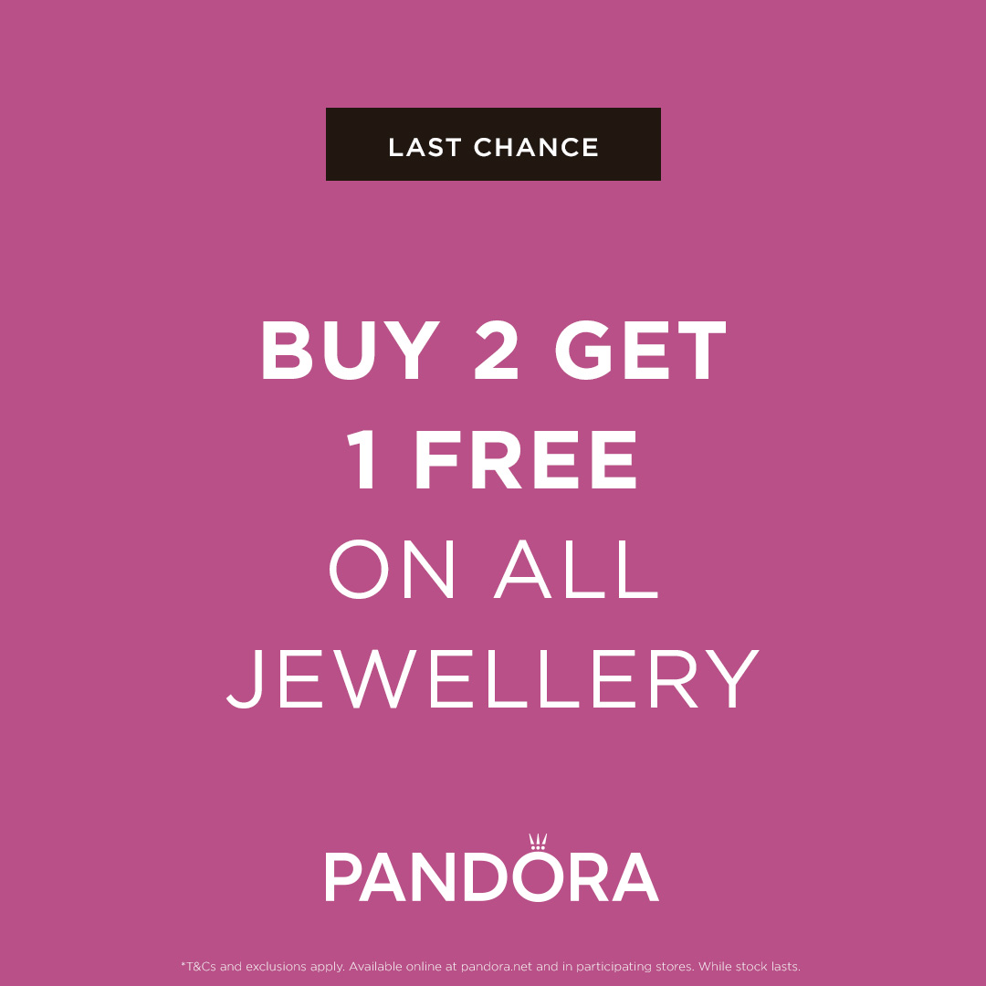 Go backBuy 2 get 1 Free at PandoraBuy two items and get a third for free. Cheapest item free. Exclusions apply.Between 2/12/25 and 14/12/25. While stocks last. Not valid with other offers.